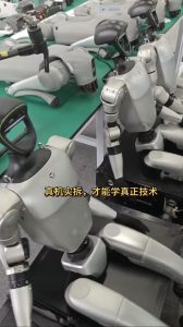 不同于传统课堂的纸上谈兵,疆灵科技的实训课堂,把 “真机实拆” 作为核心教学方式。学生们亲手拆解、组装、调试机器人的每一个部件,在拧螺丝、接线路、测信号的过程中,理解伺服电机的控制逻辑、躯干主板的供电原理、关节模组的传动结构。遇到线路接错、关节卡顿等问题,老师不会直接给出答案,而是引导学生顺着电路走向排查故障,从源头弄懂机器人维修的底层逻辑。学机器狗维修到疆灵科技。实训车间里,没有 “只看不练” 的旁观者。学生们从最初不敢下手,到后来能独立完成关节拆解、线路检测,甚至能根据故障现象判断是电机问题还是传感器故障。当一台被拆解的机器人在自己手中重新组装完成,通电后关节顺利转动的那一刻,学生们脸上的笑容,是对 “真机实练” 最好的回应。